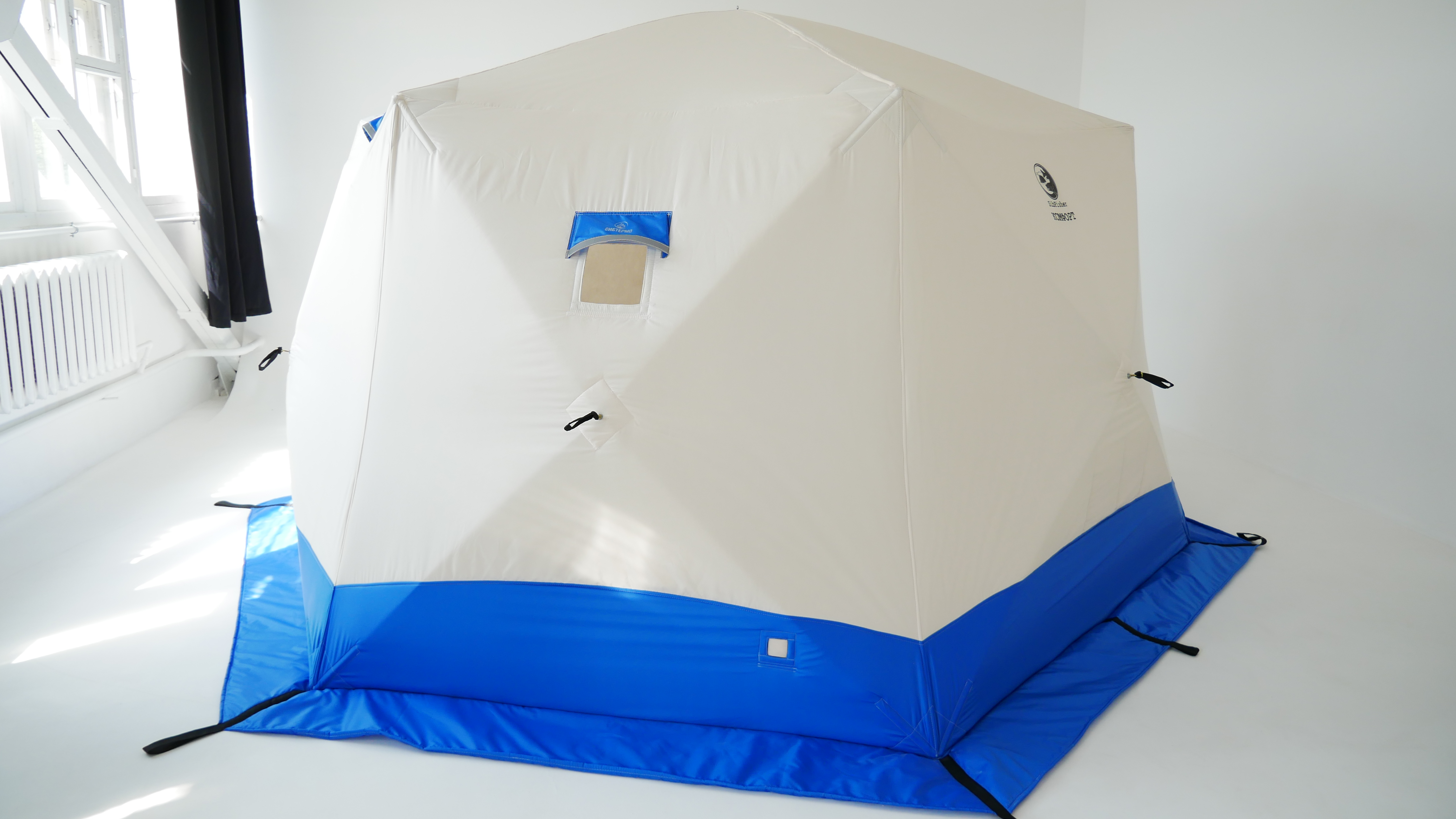 Палатка выполнена в светлых тонах и имеет светоотражающие элементы на двери и окнах, что позволяет увидеть палатку в ночное время. На наружной юбке имеются места крепления ко льду.